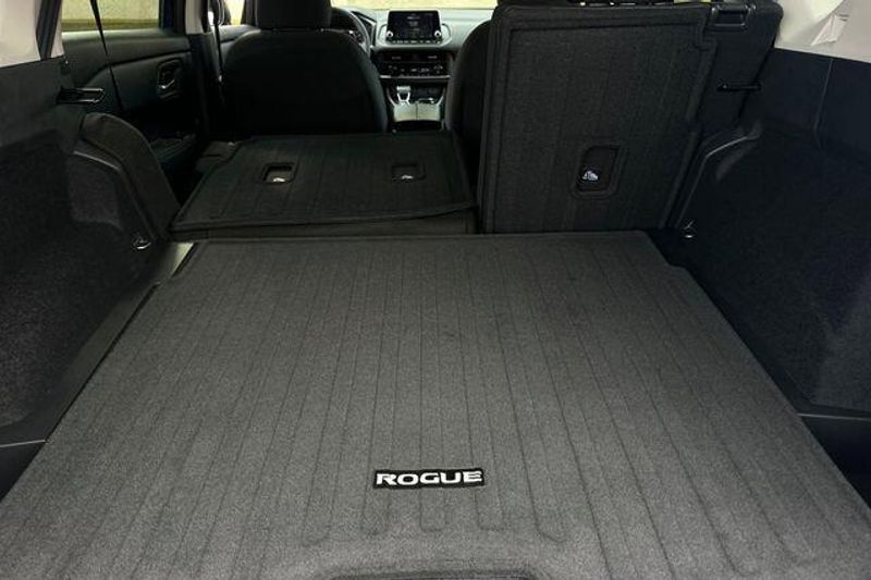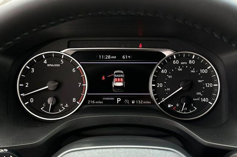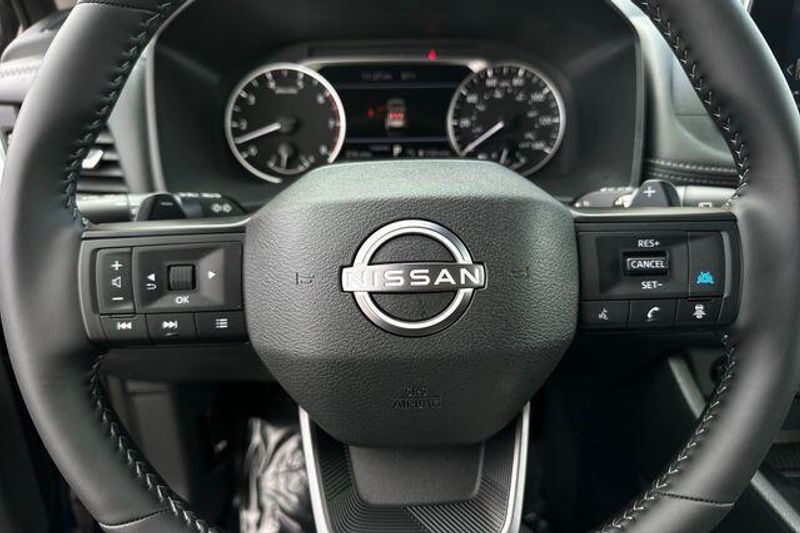 4-Wheel Disc Brakes, 6 Speakers, ABS brakes, Air Conditioning, Alloy wheels, AM/FM radio: SiriusXM, Android Auto and Apple CarPlay, Auto High-beam Headlights, Automatic temperature control, Black Splash Guards (set of 4), Brake assist, Bumpers: body-color, Chrome Rear Bumper Protector, Cloth Seat Trim with Patterned Inserts, Delay-off headlights, Driver door bin, Driver vanity mirror, Dual front impact airbags, Dual front side impact airbags, Electronic Stability Control, Emergency communication system: NissanConnect Services, First Aid Kit, Floor Mats with 1-Piece Cargo Area Protector, Four wheel independent suspension, Front anti-roll bar, Front Bucket Seats, Front Bucket Seats with 8-Way Power Driver Seat, Front Center Armrest, Front dual zone A/C, Front reading lights, Fully automatic headlights, Heated door mirrors, Illuminated entry, Knee airbag, Low tire pressure warning, Occupant sensing airbag, Outside temperature display, Overhead airbag, Overhead console, Panic alarm, Passenger door bin, Passenger vanity mirror, Power door mirrors, Power driver seat, Power Liftgate, Power steering, Power windows, Radio data system, Radio: NissanConnect with 6 Speakers, Rear anti-roll bar, Rear seat center armrest, Rear side impact airbag, Rear window defroster, Rear window wiper, Remote keyless entry, Speed control, Speed-sensing steering, Speed-Sensitive Wipers, Split folding rear seat, Spoiler, Steering wheel mounted audio controls, Tachometer, Telescoping steering wheel, Tilt steering wheel, Traction control, Trip computer, Variably intermittent wipers, and Wheels: 18'' Dark Painted Machine Finished Alloy. 30/37 City/Highway MPG