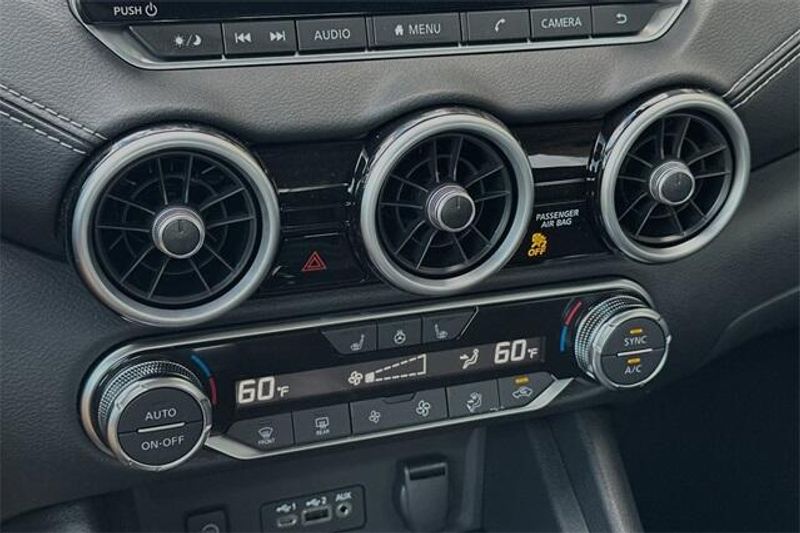 CVT with Xtronic, Charcoal Cloth, 16'' Alloy Wheels, 4-Wheel Disc Brakes, 8 Speakers, ABS brakes, Air Conditioning, Alloy wheels, AM/FM radio: SiriusXM, Auto High-beam Headlights, Blind Spot Warning, Brake assist, Bumpers: body-color, Delay-off headlights, Driver door bin, Driver vanity mirror, Dual front impact airbags, Dual front side impact airbags, Electronic Stability Control, Four wheel independent suspension, Front anti-roll bar, Front Bucket Seats, Front Center Armrest, Front reading lights, Fully automatic headlights, Illuminated entry, Knee airbag, Low tire pressure warning, NissanConnect featuring Apple CarPlay and Android Auto, Occupant sensing airbag, Outside temperature display, Overhead airbag, Overhead console, Panic alarm, Passenger door bin, Passenger vanity mirror, Power door mirrors, Power steering, Power windows, Radio data system, Radio: AM/FM w/RDS/MP3/Aux-In, Rear anti-roll bar, Rear Parking Sensors, Rear side impact airbag, Rear window defroster, Remote keyless entry, Security system, Speed control, Speed-sensing steering, Split folding rear seat, Steering wheel mounted audio controls, Tachometer, Telescoping steering wheel, Tilt steering wheel, Traction control, Trip computer, Upgraded Cloth Seat Trim, and Variably intermittent wipers. 30/40 City/Highway MPG