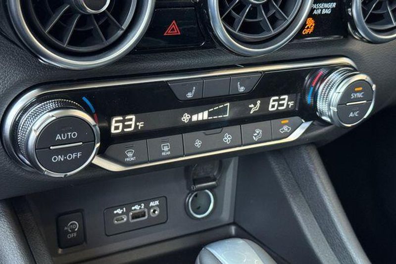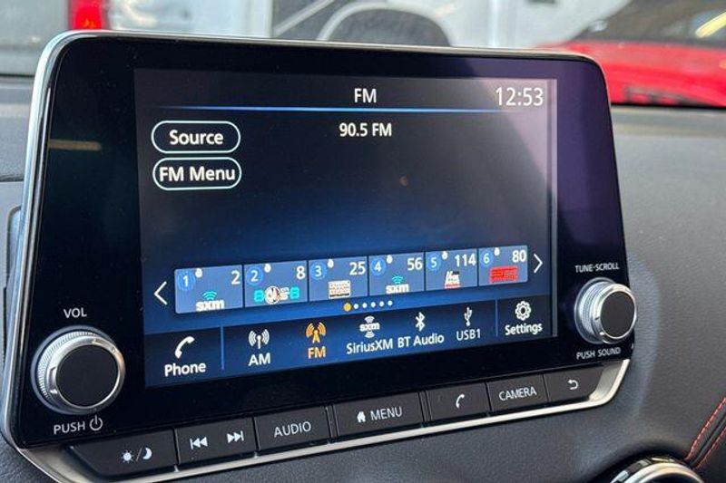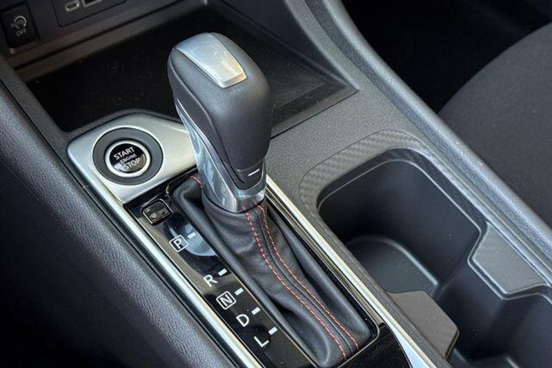 CVT with Xtronic, Sport Cloth, 18'' Alloy Wheels, 4-Wheel Disc Brakes, 8 Speakers, ABS brakes, Air Conditioning, Alloy wheels, AM/FM radio: SiriusXM, Auto High-beam Headlights, Automatic temperature control, Blind Spot Warning, Brake assist, Bumpers: body-color, Carpeted Floor Mats with Trunk Mat, Clear Rear Bumper Protector, Delay-off headlights, Door Sill Plates, Driver door bin, Driver vanity mirror, Dual front impact airbags, Dual front side impact airbags, Electronic Stability Control, Four wheel independent suspension, Front anti-roll bar, Front Bucket Seats, Front Center Armrest, Front dual zone A/C, Front reading lights, Fully automatic headlights, Heated door mirrors, Heated Front Bucket Seats, Heated front seats, Illuminated entry, Knee airbag, Leather Shift Knob, Low tire pressure warning, NissanConnect featuring Apple CarPlay and Android Auto, Occupant sensing airbag, Outside temperature display, Overhead airbag, Overhead console, Panic alarm, Passenger door bin, Passenger vanity mirror, Power door mirrors, Power steering, Power windows, Radio data system, Radio: AM/FM with RDS/MP3/Aux-in, Rear anti-roll bar, Rear Parking Sensors, Rear seat center armrest, Rear side impact airbag, Rear window defroster, Remote keyless entry, Security system, Speed control, Speed-sensing steering, Split folding rear seat, Spoiler, Sport Cloth Seat Trim, Steering wheel mounted audio controls, Tachometer, Telescoping steering wheel, Tilt steering wheel, Traction control, Trip computer, Turn signal indicator mirrors, and Variably intermittent wipers. 30/38 City/Highway MPG