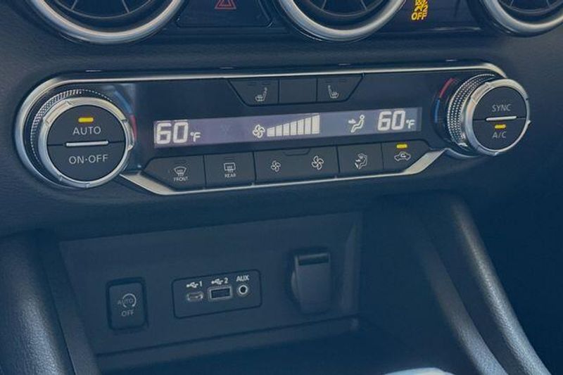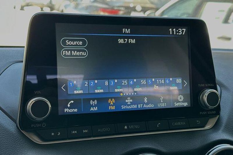 CVT with Xtronic, Sport Cloth, 18'' Alloy Wheels, 2-Tone Premium Paint, 4-Wheel Disc Brakes, 8 Speakers, ABS brakes, Air Conditioning, Alloy wheels, AM/FM radio: SiriusXM, Auto High-beam Headlights, Automatic temperature control, Blind Spot Warning, Brake assist, Bumpers: body-color, Carpeted Floor Mats with Trunk Mat, Clear Rear Bumper Protector, Delay-off headlights, Door Sill Plates, Driver door bin, Driver vanity mirror, Dual front impact airbags, Dual front side impact airbags, Electronic Stability Control, Four wheel independent suspension, Front anti-roll bar, Front Bucket Seats, Front Center Armrest, Front dual zone A/C, Front reading lights, Fully automatic headlights, Heated door mirrors, Heated Front Bucket Seats, Heated front seats, Illuminated entry, Knee airbag, Leather Shift Knob, Low tire pressure warning, Nissan USB Charging Cable Set, NissanConnect featuring Apple CarPlay and Android Auto, Occupant sensing airbag, Outside temperature display, Overhead airbag, Overhead console, Panic alarm, Passenger door bin, Passenger vanity mirror, Power door mirrors, Power steering, Power windows, Radio data system, Radio: AM/FM with RDS/MP3/Aux-in, Rear anti-roll bar, Rear Parking Sensors, Rear seat center armrest, Rear side impact airbag, Rear window defroster, Remote keyless entry, Security system, Speed control, Speed-sensing steering, Split folding rear seat, Spoiler, Sport Cloth Seat Trim, Steering wheel mounted audio controls, Tachometer, Telescoping steering wheel, Tilt steering wheel, Traction control, Trip computer, Turn signal indicator mirrors, and Variably intermittent wipers. 30/38 City/Highway MPG