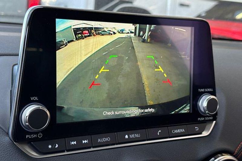 CVT with Xtronic, Sport Cloth, 18'' Alloy Wheels, 4-Wheel Disc Brakes, 8 Speakers, ABS brakes, Air Conditioning, Alloy wheels, AM/FM radio: SiriusXM, Auto High-beam Headlights, Automatic temperature control, Blind Spot Warning, Brake assist, Bumpers: body-color, Carpeted Floor Mats with Trunk Mat, Clear Rear Bumper Protector, Delay-off headlights, Door Sill Plates, Driver door bin, Driver vanity mirror, Dual front impact airbags, Dual front side impact airbags, Electronic Stability Control, Four wheel independent suspension, Front anti-roll bar, Front Bucket Seats, Front Center Armrest, Front dual zone A/C, Front reading lights, Fully automatic headlights, Heated door mirrors, Heated Front Bucket Seats, Heated front seats, Illuminated entry, Knee airbag, Leather Shift Knob, Low tire pressure warning, NissanConnect featuring Apple CarPlay and Android Auto, Occupant sensing airbag, Outside temperature display, Overhead airbag, Overhead console, Panic alarm, Passenger door bin, Passenger vanity mirror, Power door mirrors, Power steering, Power windows, Radio data system, Radio: AM/FM with RDS/MP3/Aux-in, Rear anti-roll bar, Rear Parking Sensors, Rear seat center armrest, Rear side impact airbag, Rear window defroster, Remote keyless entry, Security system, Speed control, Speed-sensing steering, Split folding rear seat, Spoiler, Sport Cloth Seat Trim, Steering wheel mounted audio controls, Tachometer, Telescoping steering wheel, Tilt steering wheel, Traction control, Trip computer, Turn signal indicator mirrors, and Variably intermittent wipers. 30/38 City/Highway MPG