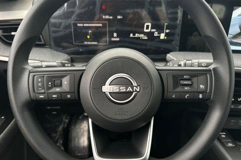 4 Speakers, 4-Wheel Disc Brakes, ABS brakes, Air Conditioning, AM/FM radio, Auto High-beam Headlights, Automatic temperature control, Blind Spot Warning, Brake assist, Bumpers: body-color, Carpeted Floor Mats and Underfloor Protector, Cloth Seat Trim, Driver door bin, Driver vanity mirror, Dual front impact airbags, Dual front side impact airbags, Electronic Stability Control, Emergency communication system, Exterior Parking Camera Rear, Front anti-roll bar, Front Bucket Seats, Front Center Armrest, Front reading lights, Front wheel independent suspension, Fully automatic headlights, Illuminated entry, Knee airbag, Low tire pressure warning, NissanConnect featuring Apple CarPlay and Android Auto, Occupant sensing airbag, Outside temperature display, Overhead airbag, Panic alarm, Passenger door bin, Passenger vanity mirror, Power door mirrors, Power steering, Power windows, Radio data system, Radio: AM/FM/SiriusXM Audio System, Rear anti-roll bar, Rear reading lights, Rear side impact airbag, Rear window defroster, Rear window wiper, Remote keyless entry, Security system, Speed control, Speed-sensing steering, Splash Guards, Split folding rear seat, Spoiler, Sport steering wheel, Steering wheel mounted audio controls, Tachometer, Telescoping steering wheel, Tilt steering wheel, Traction control, Trip computer, Variably intermittent wipers, and Wheels: 17'' Steel Flex with Full Covers. 28/35 City/Highway MPG