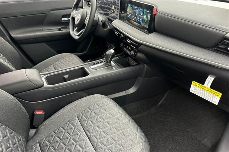 4 Speakers, 4-Wheel Disc Brakes, ABS brakes, Air Conditioning, AM/FM radio, Auto High-beam Headlights, Automatic temperature control, Blind Spot Warning, Brake assist, Bumpers: body-color, Carpeted Floor Mats & Underfloor Protector, Cloth Seat Trim, Driver door bin, Driver vanity mirror, Dual front impact airbags, Dual front side impact airbags, Electronic Stability Control, Emergency communication system, Exterior Parking Camera Rear, Front anti-roll bar, Front Bucket Seats, Front Center Armrest, Front reading lights, Front wheel independent suspension, Fully automatic headlights, Illuminated entry, Knee airbag, Low tire pressure warning, NissanConnect featuring Apple CarPlay and Android Auto, Occupant sensing airbag, Outside temperature display, Overhead airbag, Panic alarm, Passenger door bin, Passenger vanity mirror, Power door mirrors, Power steering, Power windows, Radio data system, Radio: AM/FM/SiriusXM Audio System, Rear anti-roll bar, Rear reading lights, Rear side impact airbag, Rear window defroster, Rear window wiper, Remote keyless entry, Security system, Speed control, Speed-sensing steering, Splash Guards, Split folding rear seat, Spoiler, Sport steering wheel, Steering wheel mounted audio controls, Tachometer, Telescoping steering wheel, Tilt steering wheel, Traction control, Trip computer, Variably intermittent wipers, and Wheels: 17'' Steel Flex w/Full Covers. 28/35 City/Highway MPG
