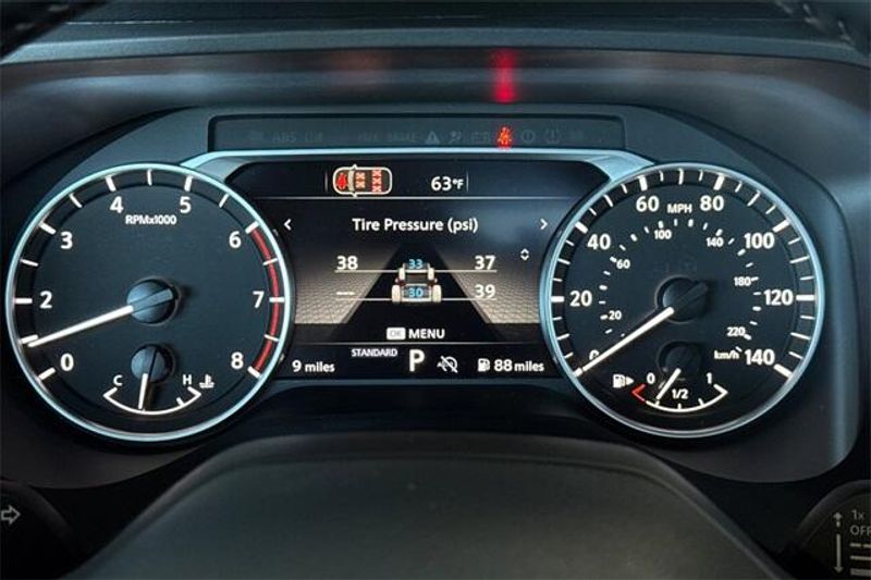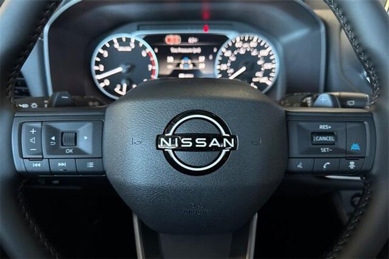 4-Wheel Disc Brakes, 6 Speakers, ABS brakes, Air Conditioning, Alloy wheels, AM/FM radio, Apple CarPlay/Android Auto, Auto High-beam Headlights, Automatic temperature control, Brake assist, Bumpers: body-color, Delay-off headlights, Driver door bin, Driver vanity mirror, Dual front impact airbags, Dual front side impact airbags, Electronic Stability Control, Emergency communication system: NissanConnect Services, Four wheel independent suspension, Frameless Rearview Mirror with Universal Remote, Front anti-roll bar, Front Bucket Seats, Front Center Armrest, Front dual zone A/C, Front reading lights, Fully automatic headlights, Heated door mirrors, Illuminated entry, Knee airbag, Low tire pressure warning, Occupant sensing airbag, Outside temperature display, Overhead airbag, Overhead console, Panic alarm, Passenger door bin, Passenger vanity mirror, Power door mirrors, Power driver seat, Power Liftgate, Power steering, Power windows, Prima-Tex Leatherette Seat Trim, Radio data system, Radio: AM/FM NissanConnect, Rear anti-roll bar, Rear seat center armrest, Rear side impact airbag, Rear window defroster, Rear window wiper, Remote keyless entry, Speed control, Speed-sensing steering, Speed-Sensitive Wipers, Split folding rear seat, Spoiler, Steering wheel mounted audio controls, Tachometer, Telescoping steering wheel, Tilt steering wheel, Traction control, Trip computer, and Variably intermittent wipers. 29/36 City/Highway MPG