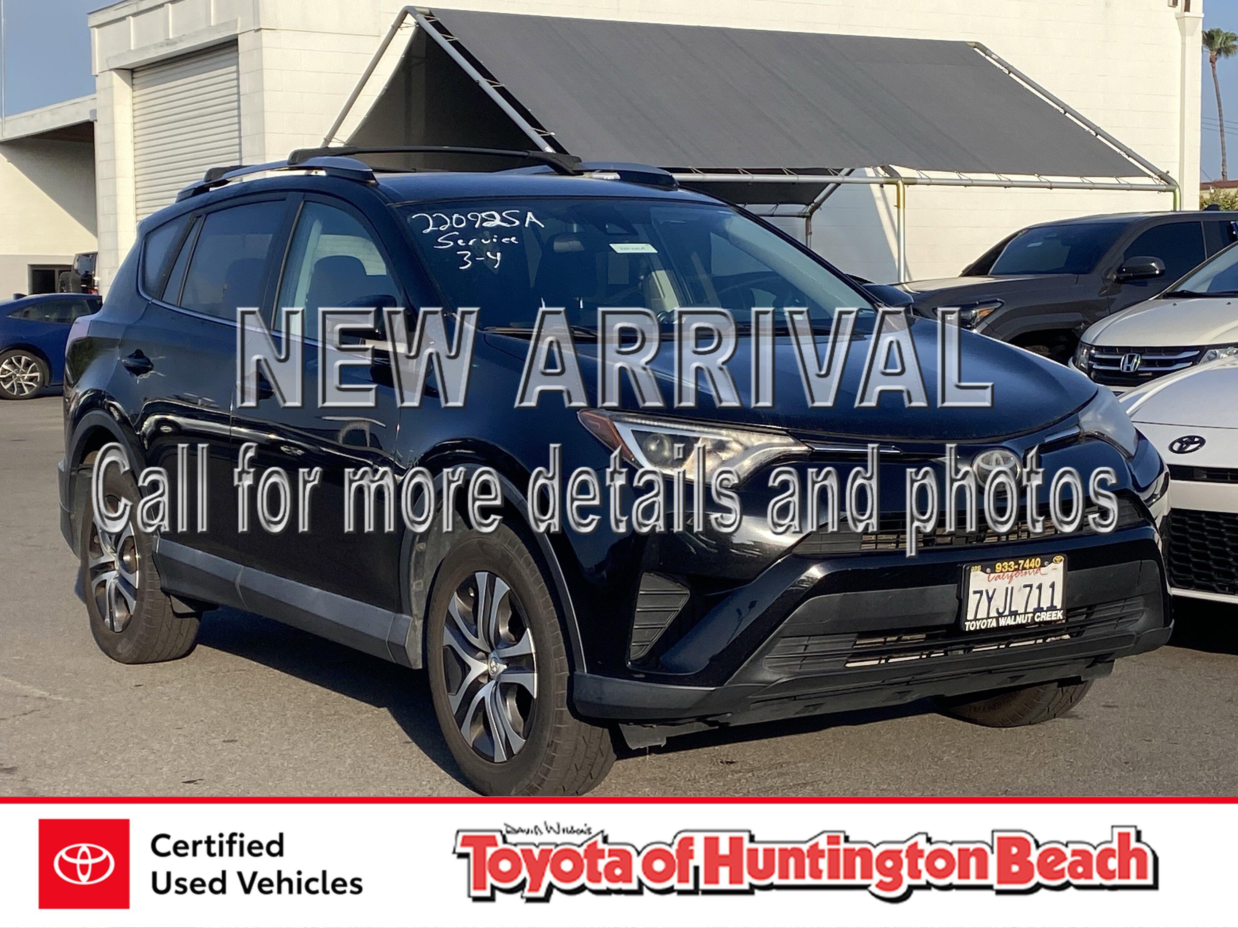 Looks and runs great. Good tires and brakes. Engine and transmission run smooth. Damage free. Immaculate inside and out. FREE CARFAX! We have great interest rate and financing for ALL credit situations.. Black 2017 Toyota RAV4 LE FWD 6-Speed Automatic 2.5L 4-Cylinder DOHC Dual VVT-i Black Cloth, ABS brakes, Active Cruise Control, Electronic Stability Control, Illuminated entry, Low tire pressure warning, Remote keyless entry, Traction control.Recent Arrival! Odometer is 3651 miles below market average! 23/30 City/Highway MPGCertification Program Details: Type your description here Awards:* 2017 IIHS Top Safety Pick+ * 2017 KBB.com 10 Best SUVs Under $25,000 * 2017 KBB.com 10 Most Awarded Brands * 2017 KBB.com Best Resale Value AwardsWHY BUY at the BEACH? Our customers are our most valuable asset. If you are already a customer, welcome back. If you are new to Toyota of Huntington Beach, we would like to convince you to join the ranks of satisfied Toyota of Huntington Beach customers. Financing for all situations. Great rates available. GREAT rates for good credit. Financing for ALL credit situations. BK ok. Low score OK. (See dealer for details.) Se Hablamos Espanol. Marticular OK.