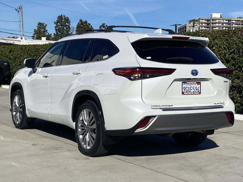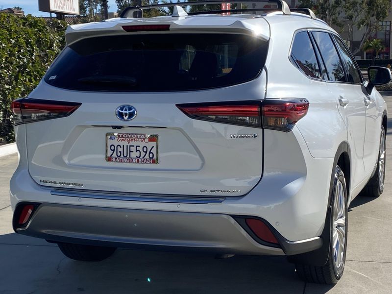 Looks and runs great. Good tires and brakes. Engine and transmission run smooth. Damage free. Immaculate inside and out. FREE CARFAX! We have great interest rate and financing for ALL credit situations.. Pearl 2023 Toyota Highlander Hybrid Platinum AWD eCVT 2.5L I4 PDI Hybrid DOHC 16V LEV3-SULEV30 2.5L I4 PDI Hybrid DOHC 16V LEV3-SULEV30.Recent Arrival! 35/34 City/Highway MPGWHY BUY at the BEACH? Our customers are our most valuable asset. If you are already a customer, welcome back. If you are new to Toyota of Huntington Beach, we would like to convince you to join the ranks of satisfied Toyota of Huntington Beach customers. Financing for all situations. Great rates available. GREAT rates for good credit. Financing for ALL credit situations. BK ok. Low score OK. (See dealer for details.) Se Hablamos Espanol. Marticular OK.