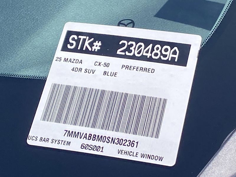 Looks and runs great. Good tires and brakes. Engine and transmission run smooth. Damage free. Immaculate inside and out. FREE CARFAX! We have great interest rate and financing for ALL credit situations.. Ingot Blue Metallic 2025 Mazda CX-50 2.5 S Preferred Package AWD 6-Speed Automatic SKYACTIV 2.5L 4-Cylinder DOHC 16VRecent Arrival! 25/31 City/Highway MPGWHY BUY at the BEACH? Our customers are our most valuable asset. If you are already a customer, welcome back. If you are new to Toyota of Huntington Beach, we would like to convince you to join the ranks of satisfied Toyota of Huntington Beach customers. Financing for all situations. Great rates available. GREAT rates for good credit. Financing for ALL credit situations. BK ok. Low score OK. (See dealer for details.) Se Hablamos Espanol. Marticular OK.