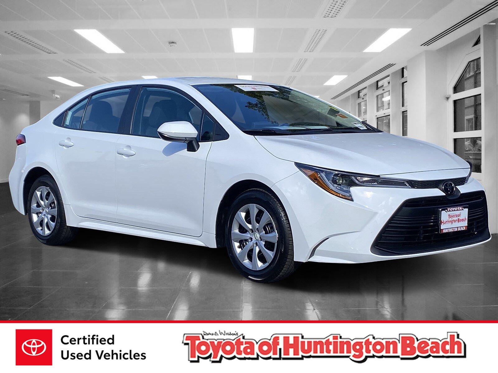 Looks and runs great. Good tires and brakes. Engine and transmission run smooth. Damage free. Immaculate inside and out. FREE CARFAX! We have great interest rate and financing for ALL credit situations.. Ice Cap 2025 Toyota Corolla LE FWD CVT 2.0L I4 DOHC 16V ABS brakes, Active Cruise Control, Electronic Stability Control, Illuminated entry, Low tire pressure warning, Remote keyless entry, Traction control.32/41 City/Highway MPGToyota Gold Certified Details:* Vehicle History* Roadside Assistance* 160 Point Inspection* Limited Warranty: 12 Month/12,000 Mile Limited Comprehensive Warranty: 12 Month/12,000 Mile (whichever comes first) from certified purchase date* Transferable Warranty* Warranty Deductible: $0* Powertrain Limited Warranty: 84 Month/100,000 Mile (whichever comes first) from TCUV purchase date* Roadside Assistance for 7 Year / 100,000 Mile. Standard New-Car Financing Rates Available. Warranty honored at over 1,400 Toyota dealers in the continental U.S. & Canada. Trade-ins accepted. Trouble-free handling of your transaction, including DMV paperworkWHY BUY at the BEACH? Our customers are our most valuable asset. If you are already a customer, welcome back. If you are new to Toyota of Huntington Beach, we would like to convince you to join the ranks of satisfied Toyota of Huntington Beach customers. Financing for all situations. Great rates available. GREAT rates for good credit. Financing for ALL credit situations. BK ok. Low score OK. (See dealer for details.) Se Hablamos Espanol. Marticular OK.