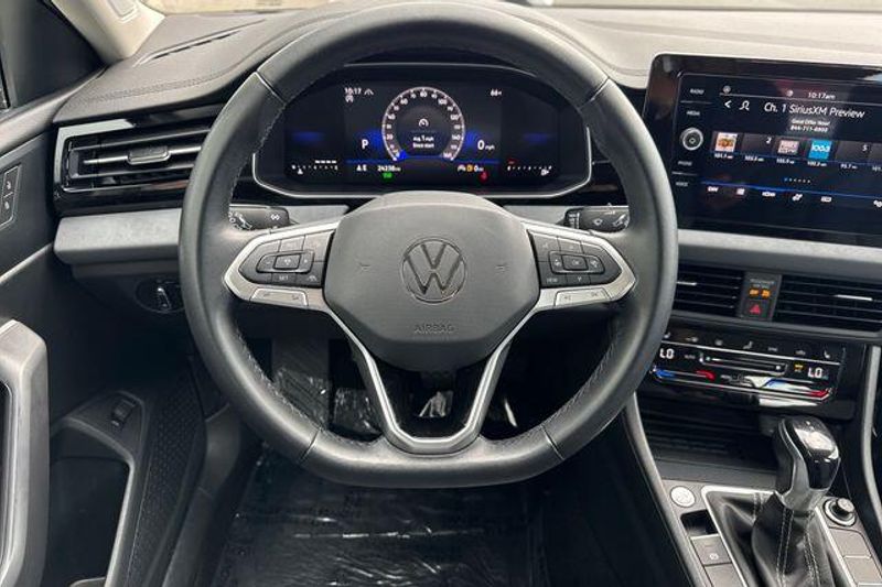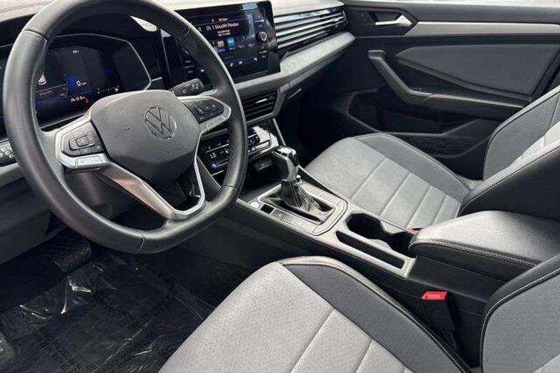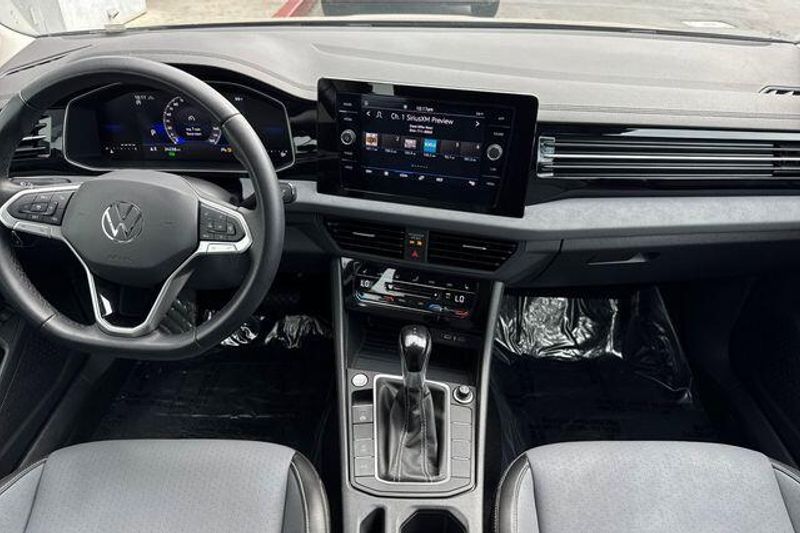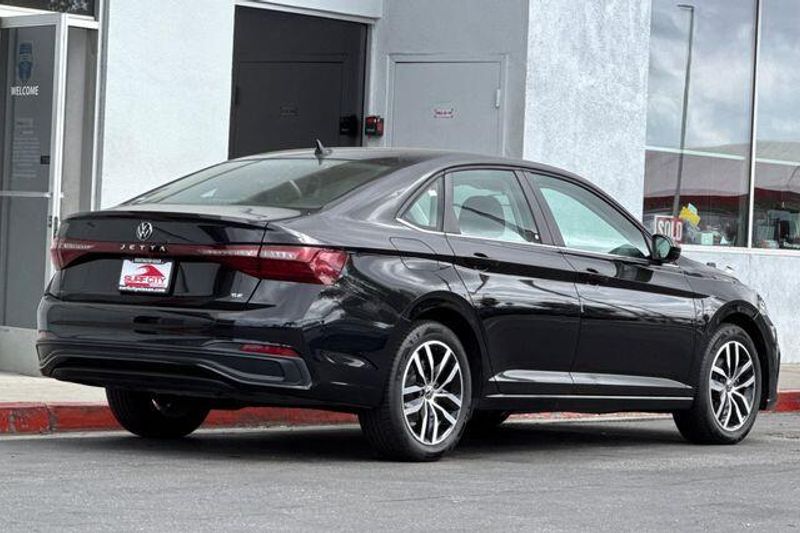Deep Black 2025 Volkswagen Jetta 1.5T SE FWD 8-Speed Automatic with Tiptronic 1.5L I-4 DI DOHC Turbocharged Grigio/Titan Black Leatherette.