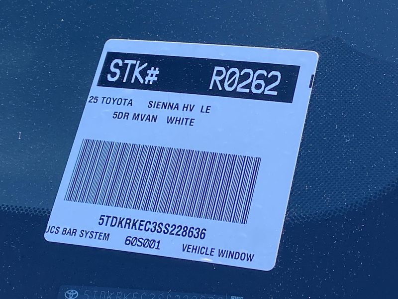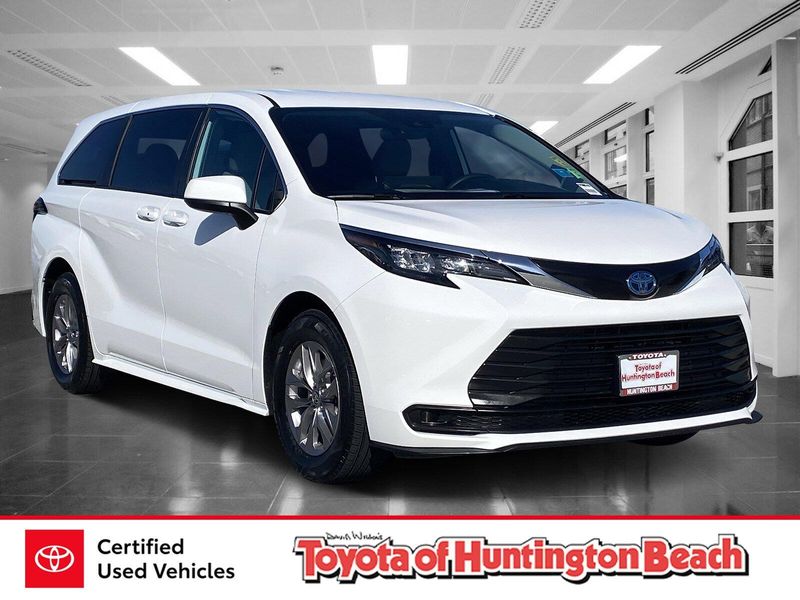 Looks and runs great. Good tires and brakes. Engine and transmission run smooth. Damage free. Immaculate inside and out. FREE CARFAX! We have great interest rate and financing for ALL credit situations.. Ice Cap 2025 Toyota Sienna LE 8 Passenger FWD CVT 2.5L I4 Hybrid w/VVT-iE DOHC 16V 2.5L I4 Hybrid w/VVT-iE DOHC 16V.36/36 City/Highway MPGToyota Gold Certified Details:* Roadside Assistance for 7 Year / 100,000 Mile. Standard New-Car Financing Rates Available. Warranty honored at over 1,400 Toyota dealers in the continental U.S. & Canada. Trade-ins accepted. Trouble-free handling of your transaction, including DMV paperwork* Vehicle History* Roadside Assistance* Limited Warranty: 12 Month/12,000 Mile Limited Comprehensive Warranty: 12 Month/12,000 Mile (whichever comes first) from certified purchase date* Warranty Deductible: $0* 160 Point Inspection* Powertrain Limited Warranty: 84 Month/100,000 Mile (whichever comes first) from TCUV purchase date* Transferable WarrantyWHY BUY at the BEACH? Our customers are our most valuable asset. If you are already a customer, welcome back. If you are new to Toyota of Huntington Beach, we would like to convince you to join the ranks of satisfied Toyota of Huntington Beach customers. Financing for all situations. Great rates available. GREAT rates for good credit. Financing for ALL credit situations. BK ok. Low score OK. (See dealer for details.) Se Hablamos Espanol. Marticular OK.
